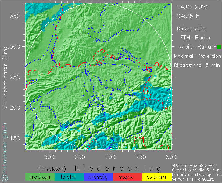 Eine mehrkernige Tiefdruckzone umfasst das Gebiet von der Biskaya bis zum Schwarzen Meer. Im Alpenraum verflachen die Druckgegensätze und die Schauerneigung klingt am Morgen ab. Voraussichtlich herrscht tagsüber weitgehend trockenes Wetter. Dieses zieht sich auch in die Nacht zum Samstag hin. Aus Westen setzt am Samstagvormittag erneut Niederschlag ein. Dieser zieht sich in den Tag hin. Gleichzeitig sinkt die Schneefallgrenze kontinuierlich und erreicht am Abend auch die tiefen Lagen des Mittellandes und den Jurasüdfuss. Der Sonntagvormittag bleibt mehrheitlich trocken. Ab Sonntagabend folgen weitere Niederschläge, die sich in unterschiedlicher Intensität in die Woche hinziehen. Auch Kalenderwoche 08 erscheint in der Bilanz milder und niederschlagsreicher als im langjährigen Mittel.