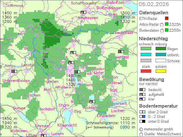 Der Freitagvormittag ist meist bewölkt und regnerisch. Die Schneefallgrenze liegt bei rund 1100 Metern. Erst am Nachmittag gibt es vor allem über dem Mittelland längere trockene Phasen und grössere Auflockerungen. Den Alpen entlang bleibt es noch länger bewölkt und nass oder es fällt Schnee. Nach einem eher milden Start steigt die Temperatur tagsüber bis gegen 7 Grad. Der Südwestwind frischt auf.