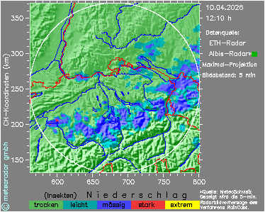 Aus Nordwesten erreicht Polarluft die Alpennordseite. Die dazugehörende Kaltfront scheint in der Ostschweiz wetterwirksamer zu sein als in der Westschweiz. Der Himmel ist bewölkt. In der Nord- und Nordostschweiz entladen sich bereits am Morgen einzelne Schauer. In der Westschweiz scheint zunächst die Sonne. Während des Vormittags nehmen die Wolken zu. Voraussichtlich bleibt das Wetter in der Westschweiz trocken. Östlich von Bern fällt auch am Nachmittag Regen, bevorzugt entlang der Voralpen und Alpen, gegen Abend auch in Mittelbünden. Am Samstag folgt vorwiegend sonniges und mildes Wetter. Der Sonntag bringt ausgedehnte Bewölkung. Vom Jura her breitet sich während des Vormittags Regen zu den Alpen aus. Zu Wochenbeginn ist der Himmel mehrheitlich bewölkt. Zeitweise fällt Regen. Die Schneefallgrenze sinkt vorübergehend auf 1000 bis 1200 Meter.