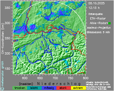 Vom Hoch über dem Ostatlantik weitet sich ein schmaler Hochdruckkeil zu den Alpen aus. Der Tag beginnt veränderlich bewölkt und mit weitgehend trockenem Wetter. Um den Mittag zieht eine Schauerlinie von Norden zu den Alpen und bringt verbreitet Regen. Anschliessend fällt bei veränderlicher Bewölkung ab und zu wenig Regen.